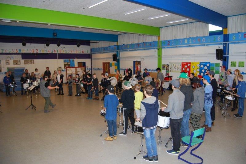 Bildene viser aspirantkorps, trommegruppe og mellomste gruppe øver + at alle har konsert, også den eldste gruppen, men der hadde ikke vi noen med i år. Den mellomste gruppen bestod av 123 spillende + dirigent! Aspirantkorpset talte ca 80 personer. Trommegruppen talte 55 personer. Med så mange spillende blir det garantert lyd og en fantastisk opplevelse å spille sammen med så mange! Vårt korps hadde med 9 personer dette året, 6 i mellomgruppa, 2 i aspirant og 1 i trommegruppa.